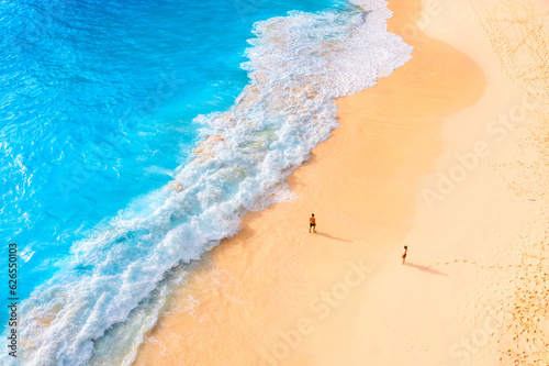 The watermark will not be included on Wall mural.: An aerial view of the people on the beach - coast as a background from top view - waves and beach - sea
