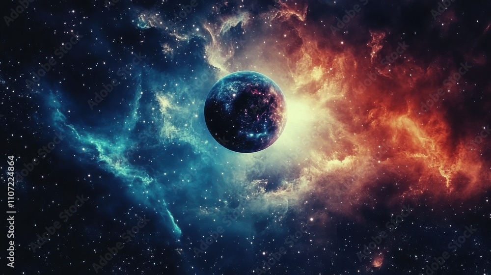 The watermark will not be included on Wall mural.: An ai-generated image of the universe, featuring a detailed galaxy and planets -
