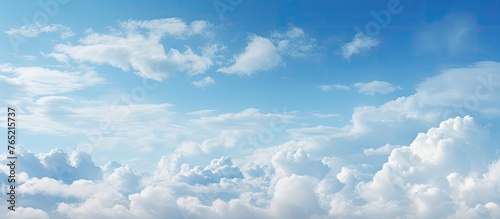 Wall mural an aircraft is flying in the sky with fluffy clouds in the background