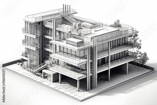 The watermark will not be included on Wall mural.: An architectural model of a building with multiple balconies and terraces - generative ai
