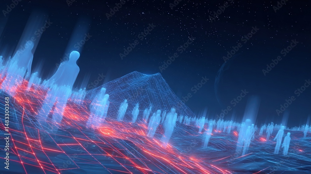 Wall mural an array of interconnected trading agis displayed as holographic interfaces negotiating contracts an - Wall murals Wall mural an array of interconnected trading agis displayed as holographic interfaces negotiating contracts an - Wall murals