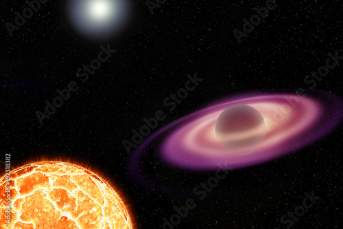 Wall mural an artistic illustration of a neutron star with an impressive accretion disk and a nearby exploding  - Wall murals Wall mural an artistic illustration of a neutron star with an impressive accretion disk and a nearby exploding - Wall murals