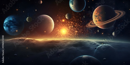 The watermark will not be included on Wall mural.: An artistic rendering of the solar system or galaxy with vibrant colors and textures - generative ai -