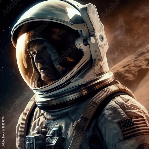 Wall mural an astronaut exploring an alien planet. a high-tech astronaut from the future. generative ai art.