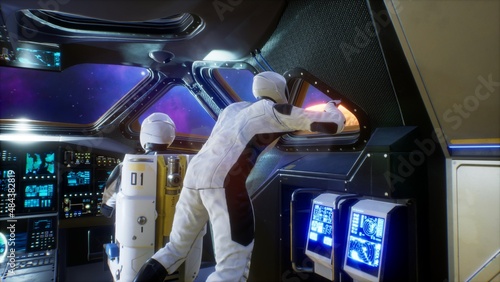 Wall mural an astronaut floats in zero gravity in his spaceship and takes in views of the beautiful universe. t