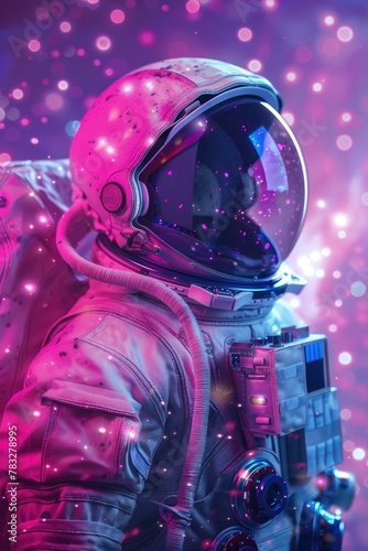 Wall mural an astronaut in a space suit against a pink background. suitable for space exploration concepts