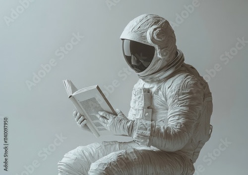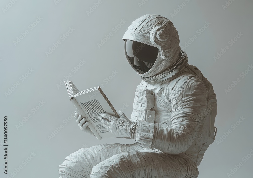 Wall mural an astronaut in a spacesuit reading a book, blending science with leisure.