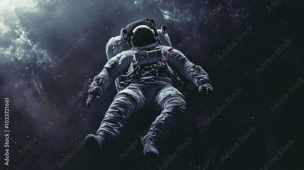 The watermark will not be included on Wall mural.: An astronaut lost in space falling and floating adrift