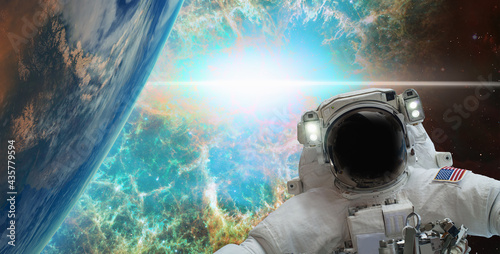 Wall mural : An astronaut performing a spacewalk with supernova explosion in the background "elements of this ima