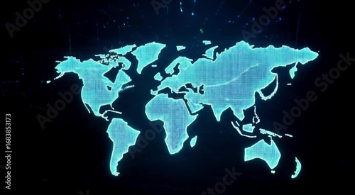 Wall mural an elegant global vector map with glowing binary code on a black background illustrates a futuristic - Wall murals Wall mural an elegant global vector map with glowing binary code on a black background illustrates a futuristic - Wall murals