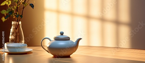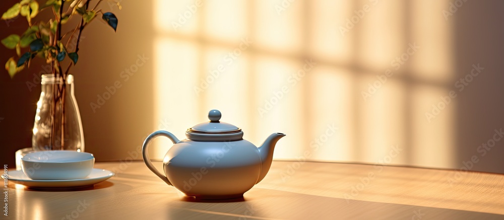 Wall mural an elegant teapot placed on a bright table in a well lit room creating a photograph with ample copy