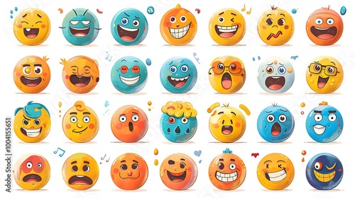 An emoji design set featuring expressive faces and symbols, perfect for use in messaging apps and diWall mural