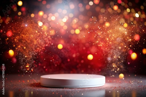 Wall mural : An empty podium with bright lights and a focused spotlight -