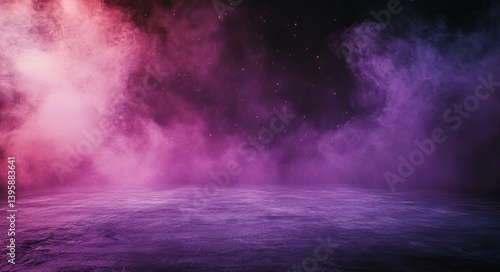 Wall mural an empty room is set against a backdrop of abstract purple with spotlights and lights that shine bri - Wall murals Wall mural an empty room is set against a backdrop of abstract purple with spotlights and lights that shine bri - Wall murals