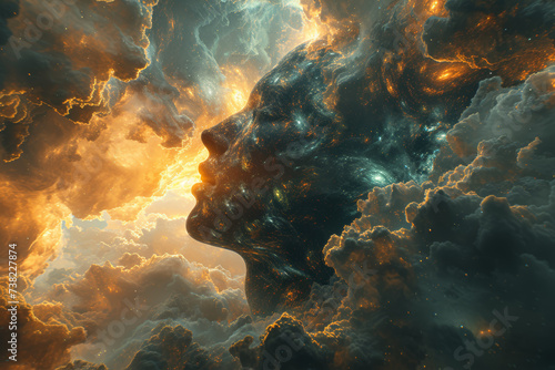 Wall mural an enigmatic figure with a surreal nebula within, portraying the vastness and complexity of the ment