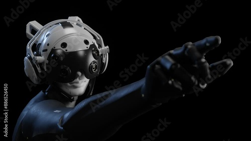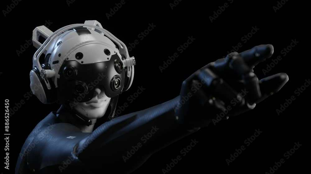 The watermark will not be included on Wall mural.: An epic camera with a robot - the robot points with his finger fixing the violation