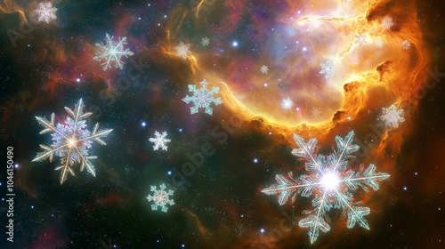 Wall mural an ethereal view of the snowflake galaxy, where each snowflake-shaped star glows brightly within a s - Wall murals Wall mural an ethereal view of the snowflake galaxy, where each snowflake-shaped star glows brightly within a s - Wall murals