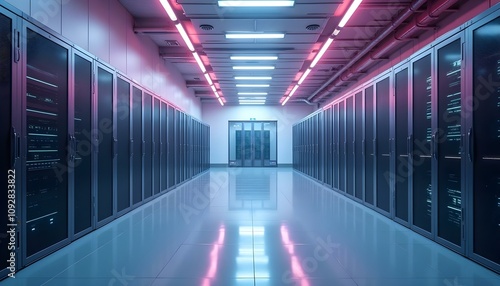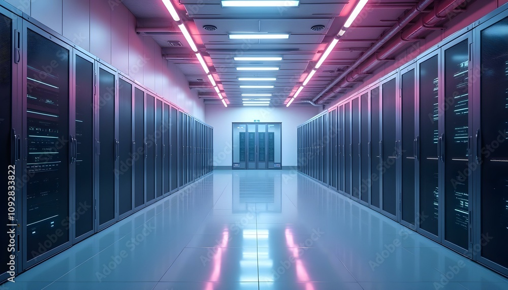 Wall mural an expansive empty data center featuring an array of unused server units create with ai - Wall murals Wall mural an expansive empty data center featuring an array of unused server units create with ai - Wall murals