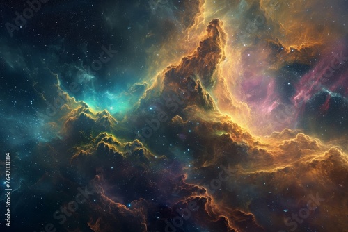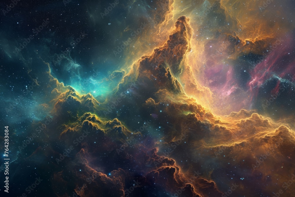 Wall mural an expansive space with a multitude of stars and swirling clouds, creating a mesmerizing celestial d - Wall murals Wall mural an expansive space with a multitude of stars and swirling clouds, creating a mesmerizing celestial d - Wall murals