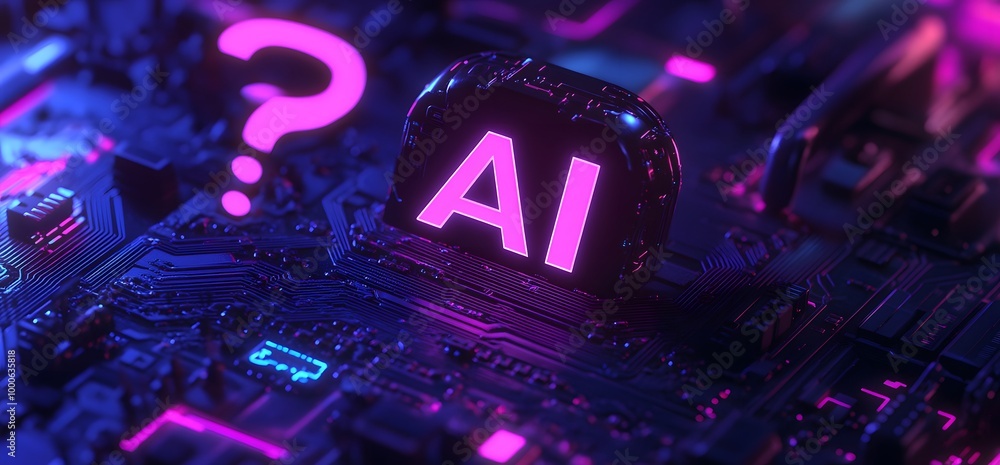 Wall mural an icon of an ai head with the letters ai on it, and in front is circuitry. the background is purple - Wall murals Wall mural an icon of an ai head with the letters ai on it, and in front is circuitry. the background is purple - Wall murals