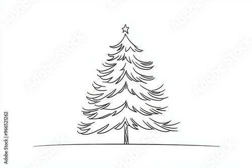 Wall mural an illustration of a fir tree drawn with continuous lines. this black and white design is set agains