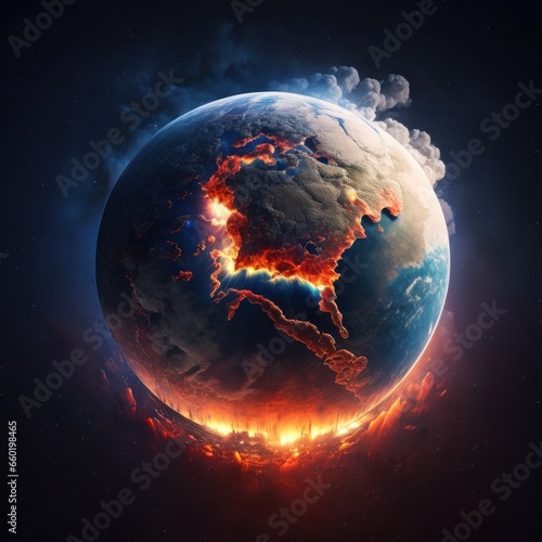The watermark will not be included on Wall mural.: An illustration of the earth exploding and burning - generative ai -