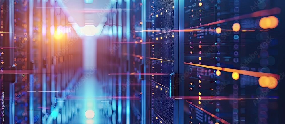 Wall mural an image combining a website interface and a data center with background effects ideal for including - Wall murals Wall mural an image combining a website interface and a data center with background effects ideal for including - Wall murals
