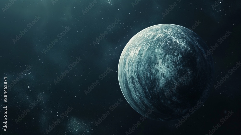 Wall mural an image depicting a rocky, icy planet with deep textures and patterns, floating in the void of spac - Wall murals Wall mural an image depicting a rocky, icy planet with deep textures and patterns, floating in the void of spac - Wall murals