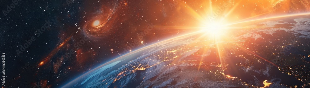 Wall mural an image of a globe with the sun setting behind it - Wall murals Wall mural an image of a globe with the sun setting behind it - Wall murals
