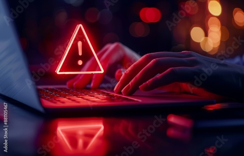 Wall mural an image of a laptop screen with digital alert symbols hovering over the keys depicts the discussion