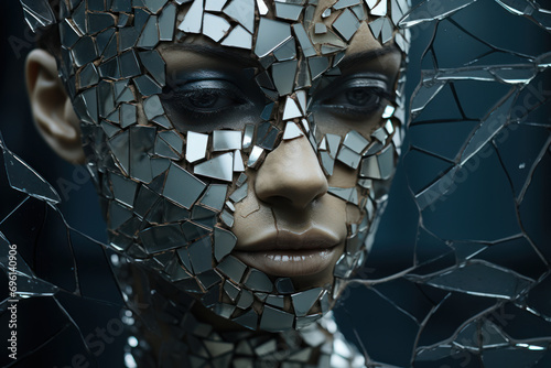 Wall mural an image of a shattered mirror reflecting a unified image, embodying the paradox of fragmentation co