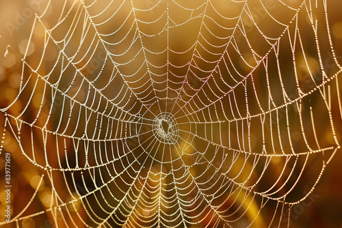 The watermark will not be included on Wall mural.: An image showcasing a spiderweb glistening with morning dew, highlighting the delicate threads and t