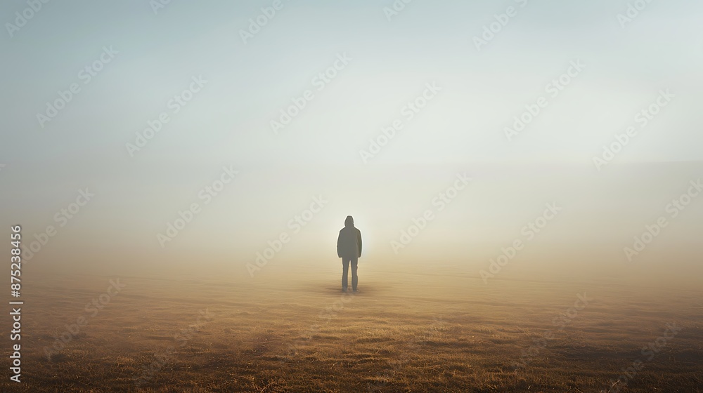 Wall mural an image showing a determined individual standing alone in a desolate landscape, embodying the spiri