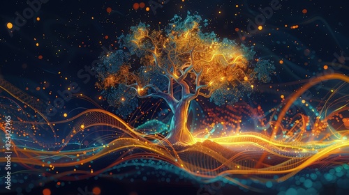 Wall mural : An imaginative idea illustration showcasing a tree with glowing branches and abstract patterns, symb
