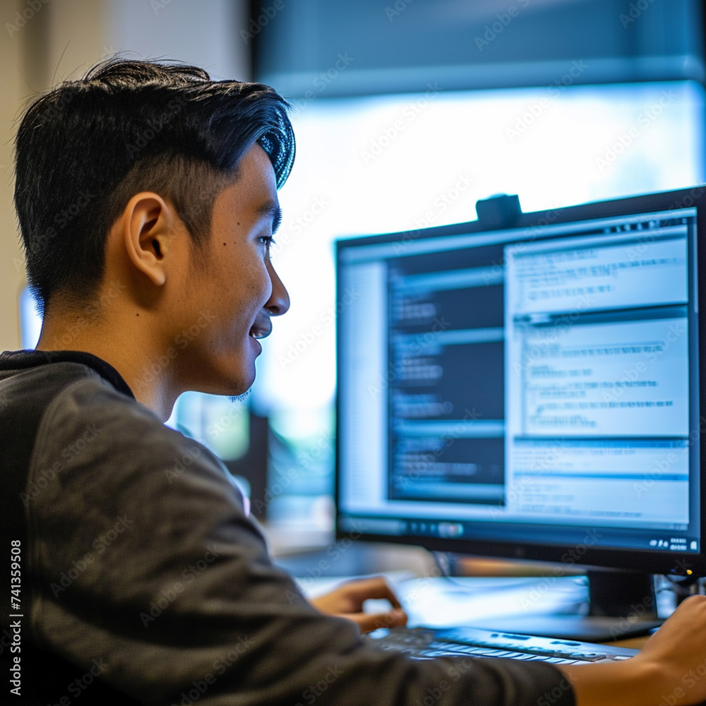 Wall mural an individual engaging in a friendly and casual conversation chat on a computer screen. generative a - Wall murals Wall mural an individual engaging in a friendly and casual conversation chat on a computer screen. generative a - Wall murals