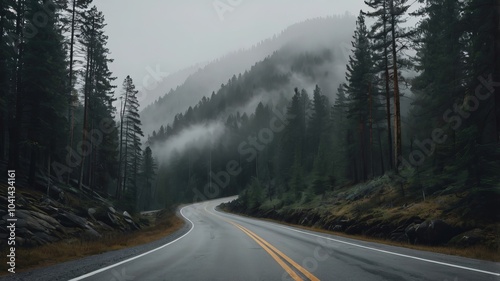 The watermark will not be included on Wall mural.: An infinity road with mountain and mist