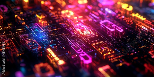 Wall mural an innovative typography lab featuring dynamic holographic fonts and glowing text designs, creating  - Wall murals Wall mural an innovative typography lab featuring dynamic holographic fonts and glowing text designs, creating - Wall murals