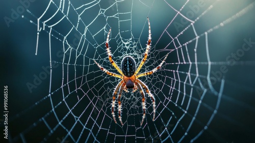 Wall mural an intricate macro image of a spider weaving its web, showcasing the delicate threads and the skill  - Wall murals Wall mural an intricate macro image of a spider weaving its web, showcasing the delicate threads and the skill - Wall murals