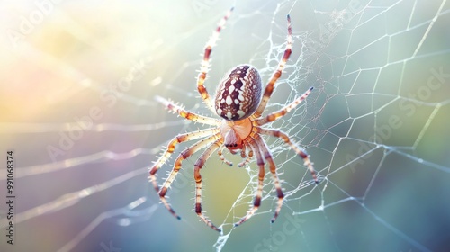 Wall mural : An intricate macro image of a spider weaving its web, showcasing the delicate threads and the skill