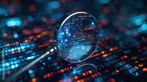 Wall mural : An intricate view of digital code magnified through a lens, depicting the scrutiny involved in cyber