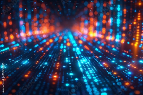 Wall mural an intriguing design featuring digital streams, binary coding, glitch visuals, and deep neon hues. i