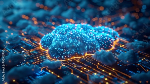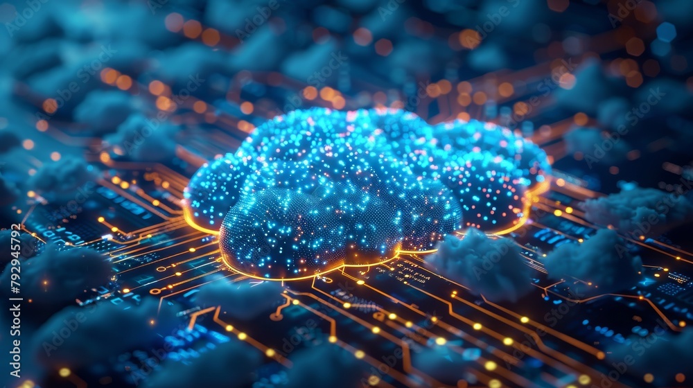 The watermark will not be included on Wall mural.: An isometric illustration of the cloud computing technology with digital devices