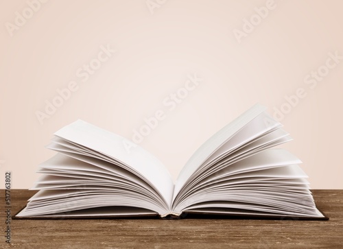 The watermark will not be included on Wall mural.: An open empty old notebook on the desk background -