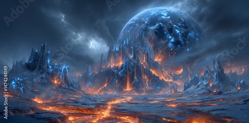 The watermark will not be included on Wall mural.: An otherworldly landscape, set on the surface of an alien planet, creates a captivating science fict