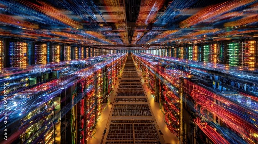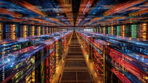 Wall mural an overhead shot of a bustling data center filled with rows of powerful server racks all interconnec - Wall murals Wall mural an overhead shot of a bustling data center filled with rows of powerful server racks all interconnec - Wall murals