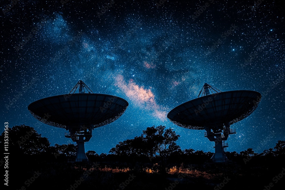 The watermark will not be included on Wall mural.: An stock image of a radio telescope directed towards the sky -