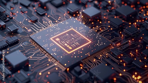 Wall mural an ultra-modern microprocessor, surrounded by intricate digital data streams and glowing light effec