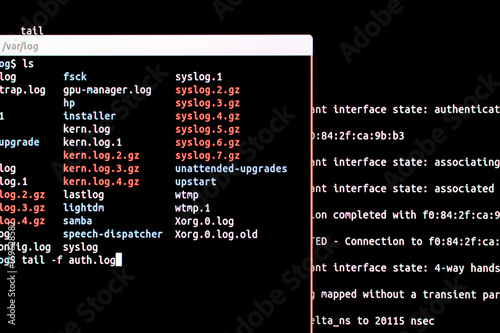 Wall mural : Analysis of authentication log files in an operating system - ssh connection through a terminal to te