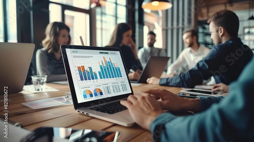 The watermark will not be included on Wall mural.: Analysts in the workplace are studying financial data for marketing strategy at the workspace, and t