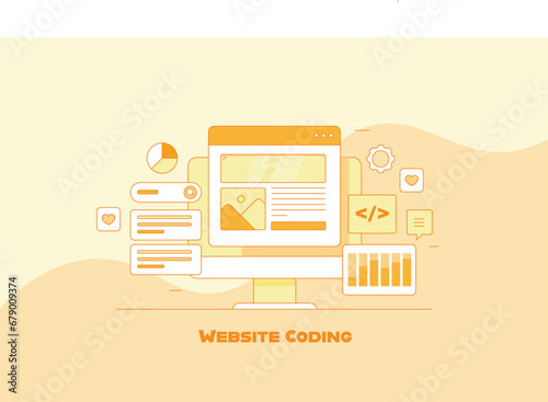 Wall mural : Analytics tracking software code on website, displaying web traffic flow and conversion rate on dash